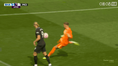 第25分钟,曼城组织进攻,艾特-努里接到B席直塞,禁区内左侧挑传后点,哈兰德头球攻门被维尔布鲁根门线扑出。↓